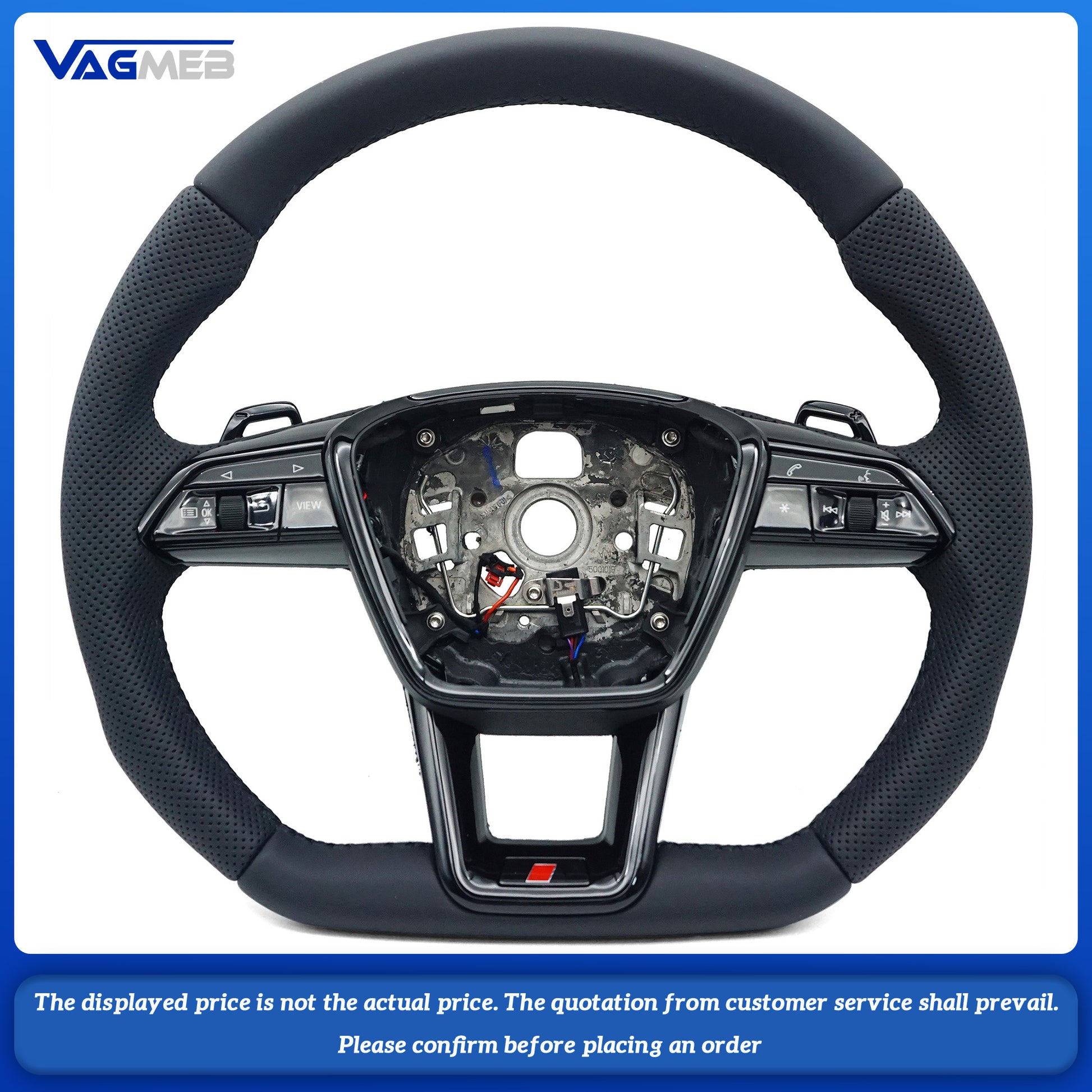 For Audi A6 C8 painted black heated steering wheel with white stitching sports flat bottomed steering wheel, Car Accessories