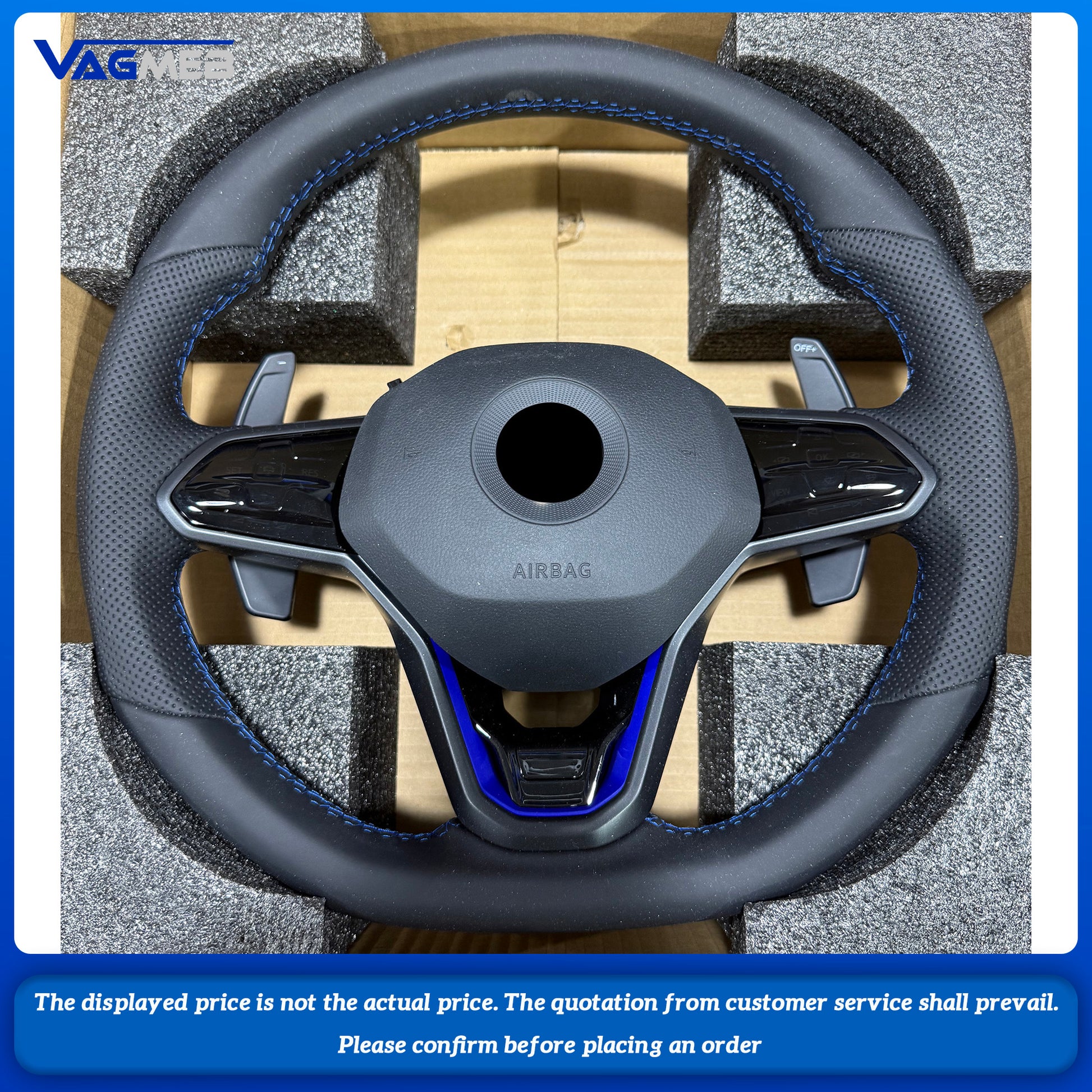 For VW Golf 8 MK8 custom leather Perforated leather with button and blue paddle steeringwheel with blue R With driving mode button