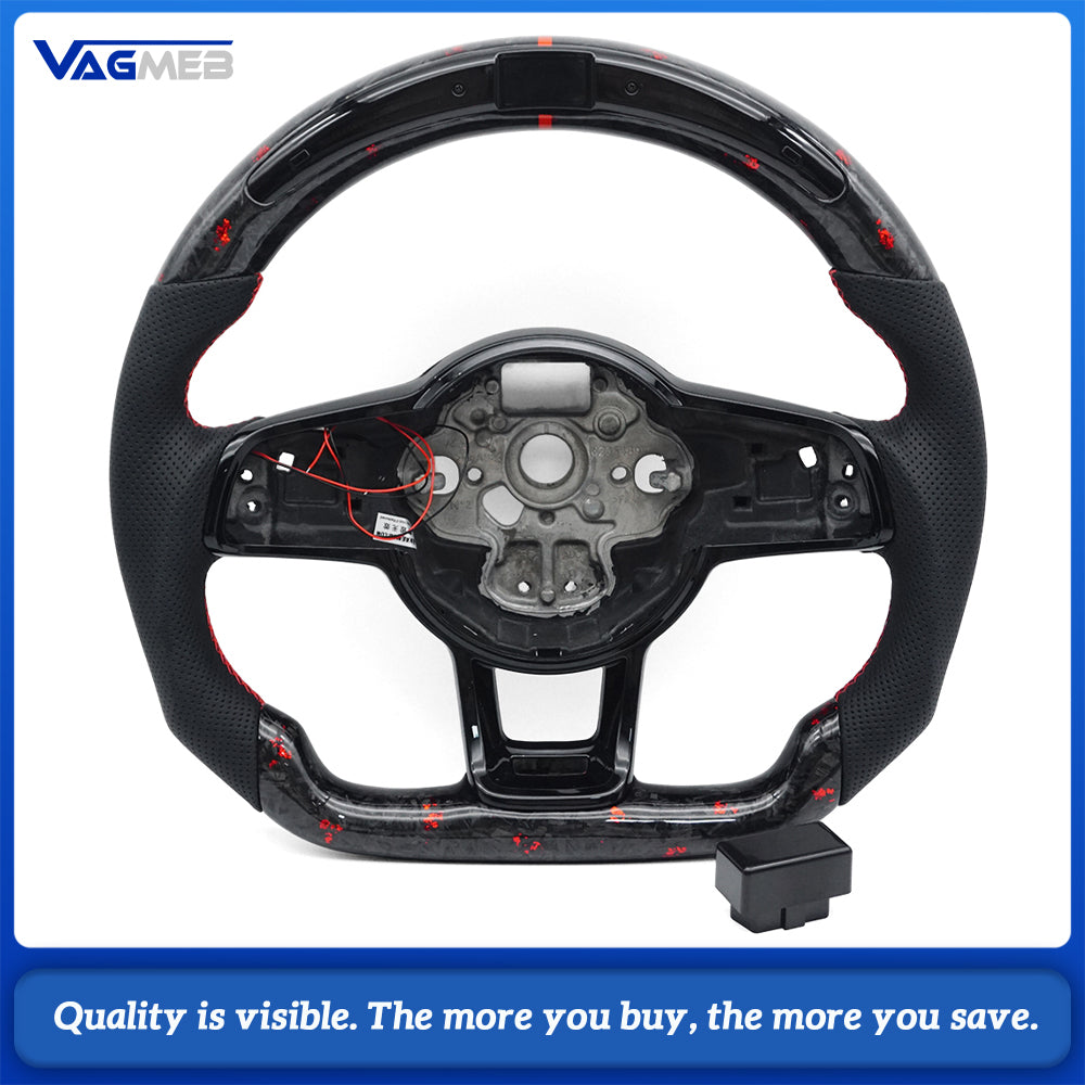 Forged red foil carbon fiber leather sports LED steering wheel with frame for VW Golf 7 MK7 GTI Passat B8 Tiguan MK2 Polo Jetta