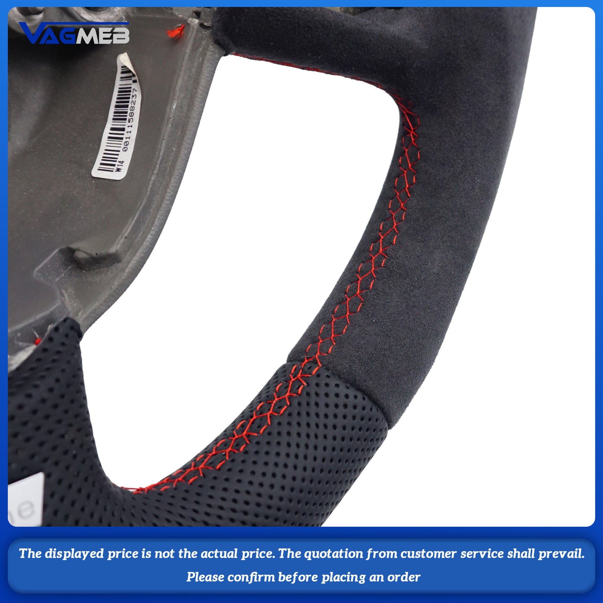 Half-grain leather perforated red thread black reverse logo steering wheel For Audi A3 2008